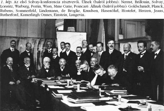 Simonyi Károly A fizika kultúrtörténete című könyvében sok érdekes dokumentumot, fényképet közöl. Az egyik legérdekesebb ezek közül az, amelyik az első Solvay-konferencia résztvevőiről készült (1. kép). A fotót egy brüsszeli fényképész, bizonyos Benjamin Couprie készítette egy szerencsés pillanatban. Eduardo Amaldi (1908–1989) olasz fizikus, az 1970-es és 1973-as Solvay-konferencia elnöke szerint ez talán minden idők leghíresebb fényképe, amit fizikusokról készítettek. A helyet és az időpontot is jól ismerjük: Brüsszel, Hotel Metropole, 1911. október 30. – november 3. Itt és ekkor tartották az első Solvay-konferenciát.